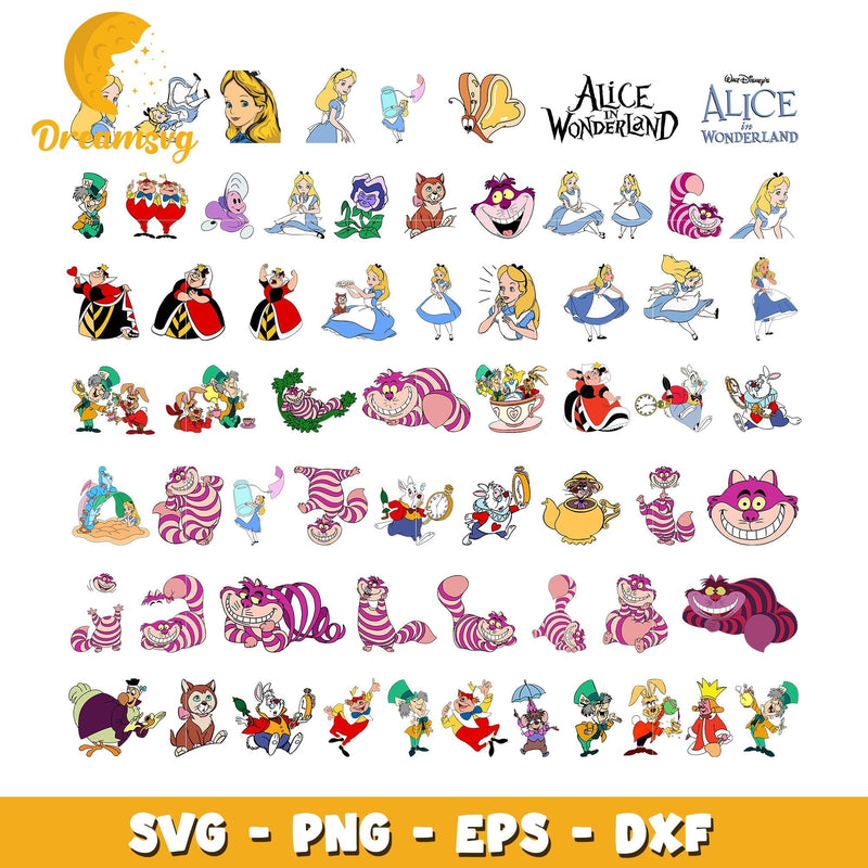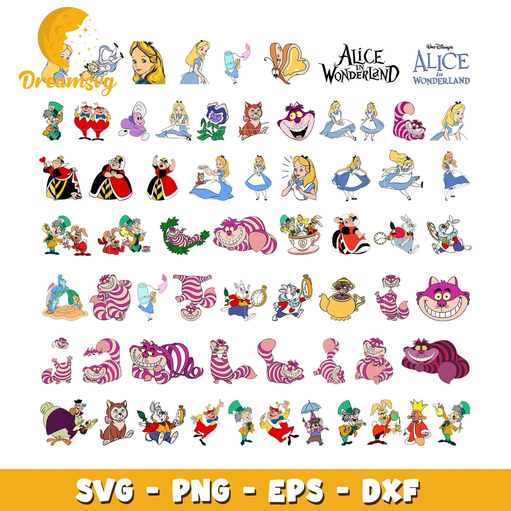 AIice in wonderland characters bundle svg is a product from our Disney collection that captures the charm of beloved Disney characters, providing versatile, scalable graphics ideal for crafting with cutting machines like Cricut and Silhouette. Featuring iconic characters like Mickey Mouse, princesses, and other favorites, these SVG files allow fans to create personalized items from T-shirts and mugs to home decor and party supplies. Perfect for Disney enthusiasts of all ages, these designs offer smooth cuts and clear details on vinyl, paper, or fabric.