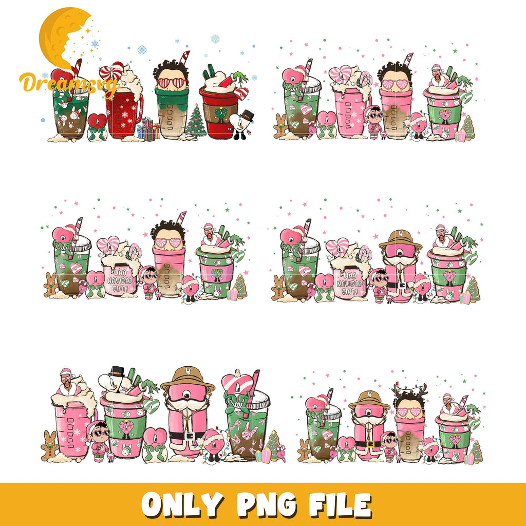 Bad bunny coffee cup christmas bundle png, bad bunny christmas png