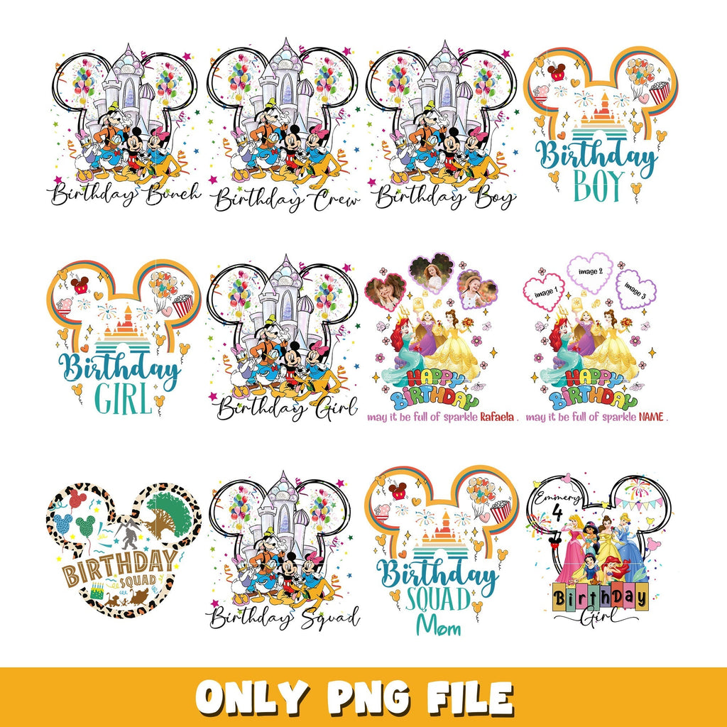 Disney birthday girl bundle png, Disney cartoon png, Digital download this is a digital download file. It's not a physical commodity. Those are digital files you can use for t-shirts, scrapbooks, wall vinyls, stickers, Perfect for T-shirts, iron-ons, mugs, printables, card making, scrapbooking, etc.