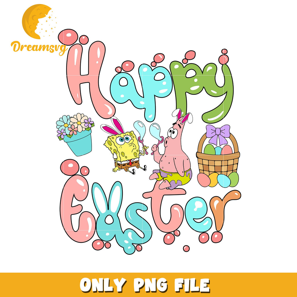 Happy Easter Fun with SpongeBob and Patrick PNG Design